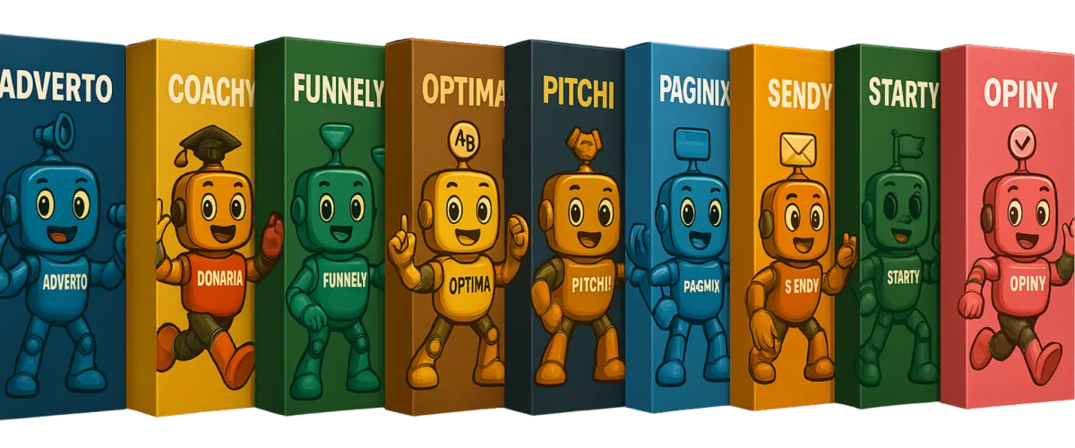 Incluye 12 bots personalizados, cada uno entrenado para una función clave de recaudación de fondos (firmas, vídeos, WhatsApp, email, embudos, propuestas a empresas, newsletters, etc.), más tres bonus para análisis de decisiones, masterclasses y optimización de campañas.
